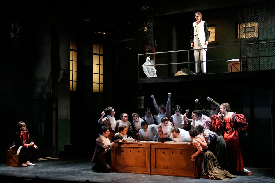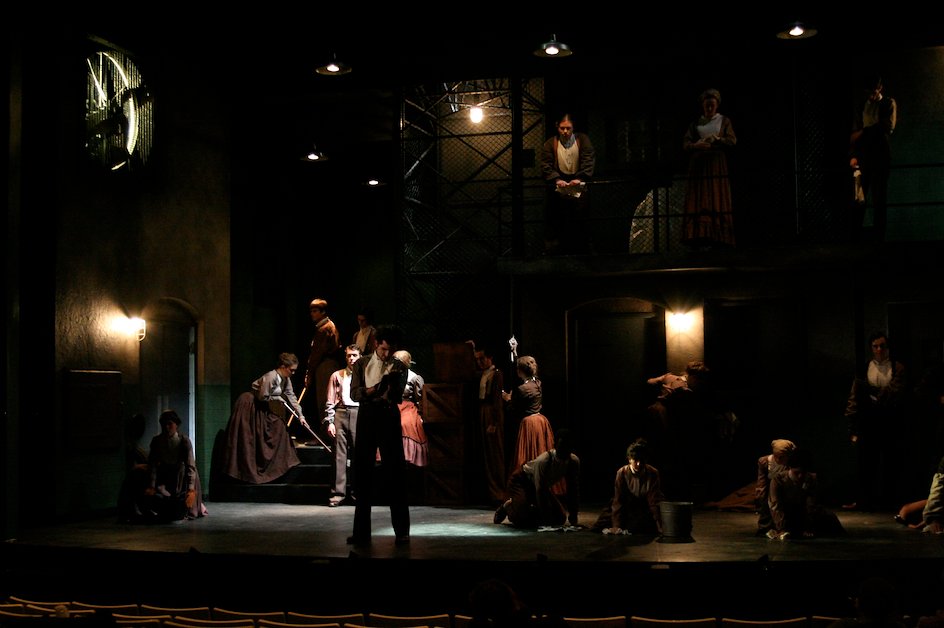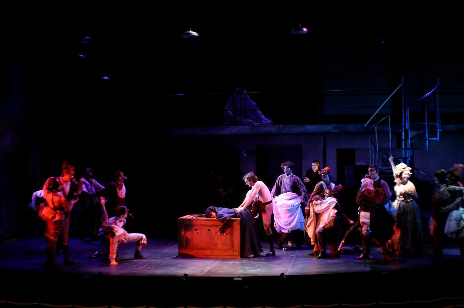 The story takes place in an abandoned warehouse, where the ensemble use found objects to tell Sweeney's tale...