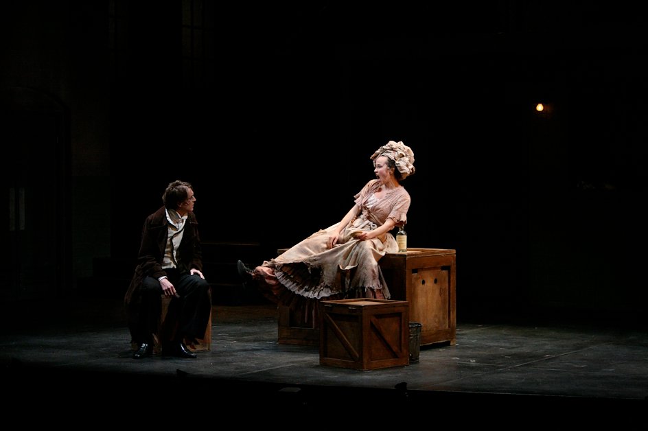Mrs. Lovett (Laura Huizenga) admits to Sweeney that she makes 'The Worst Pies in London'.