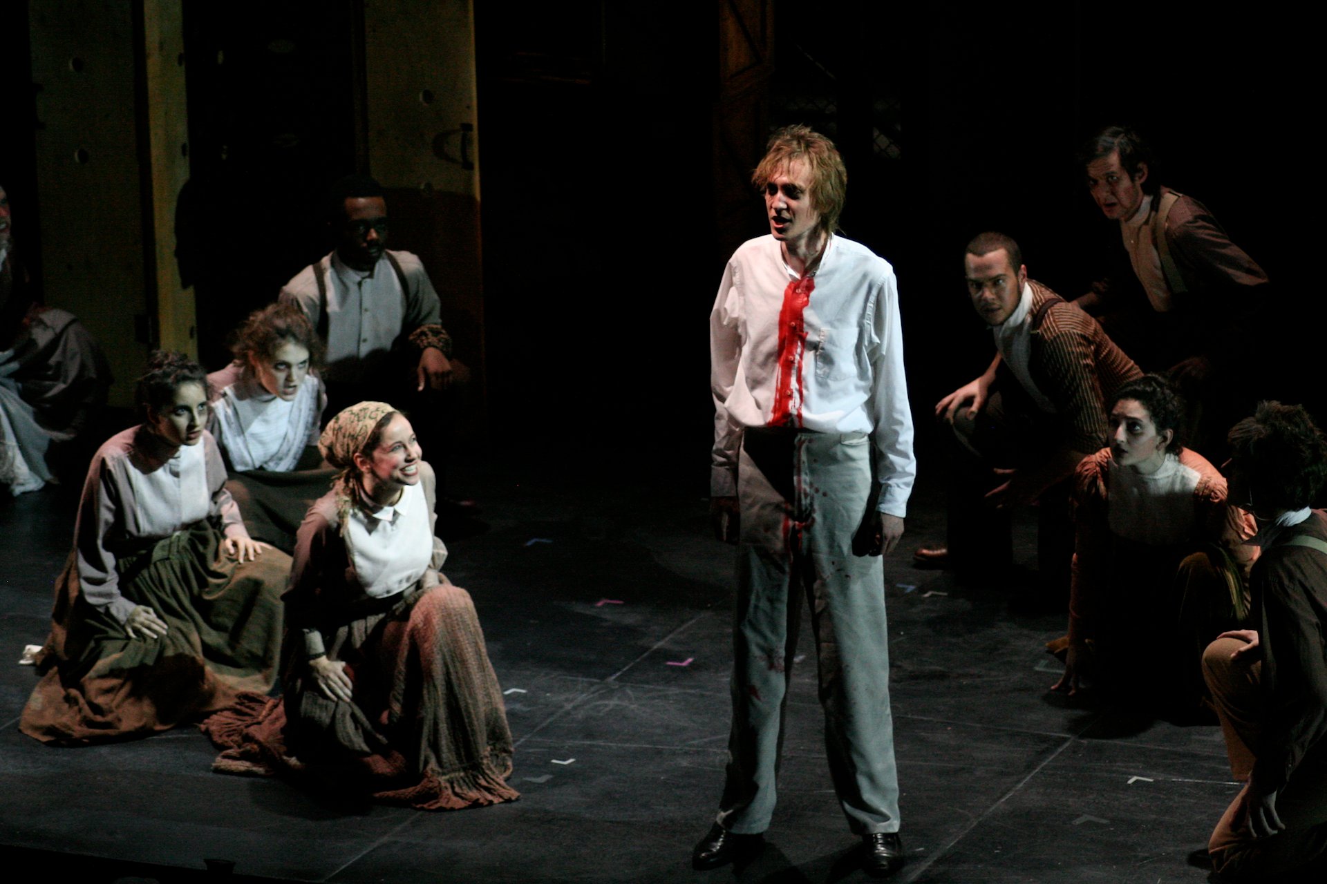 Sweeney's wife Lucy is raped by Judge Turpin (Matt Edmonds) in an animalistic orgy.