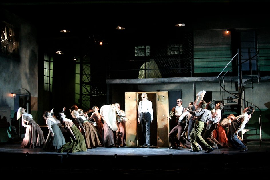 Encouraged by Mrs. Lovett, Sweeney sings to his razors, 'His Friends', as the ensemble celebrate with him.