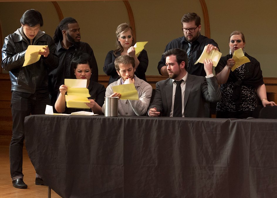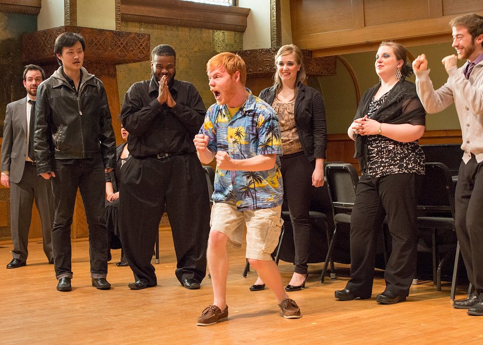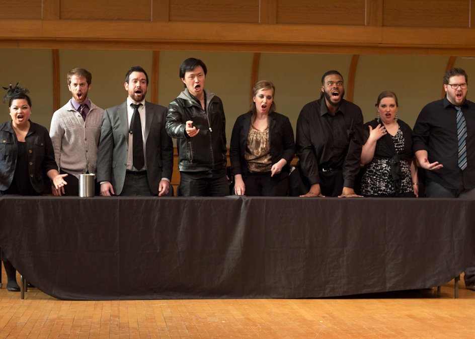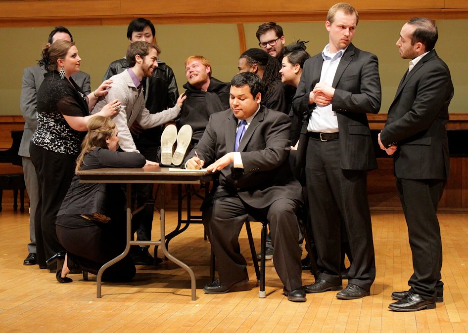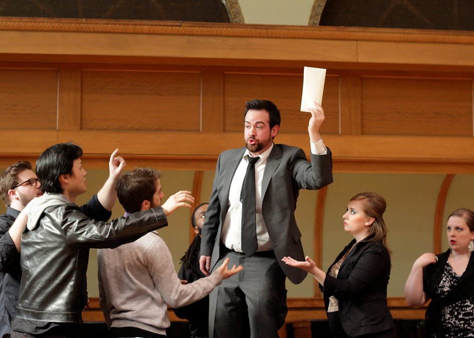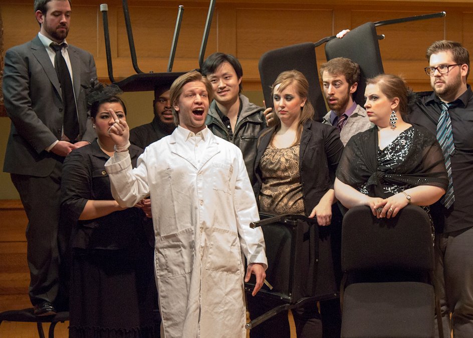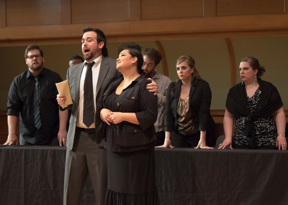 In "O mio babbino caro", Lauretta (Sara Schabas) begs her father Gianni (Reuben Lillie) for help, switching from singing in English to Italian for this secretive exchange.