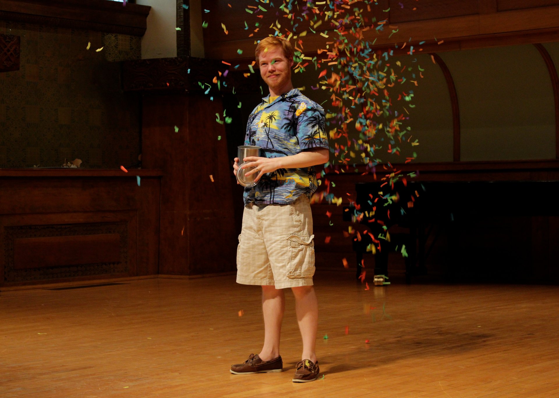 Having tricked the Family and given himself the best items in the will, Schicchi celebrates and scatters Buoso's ashes.