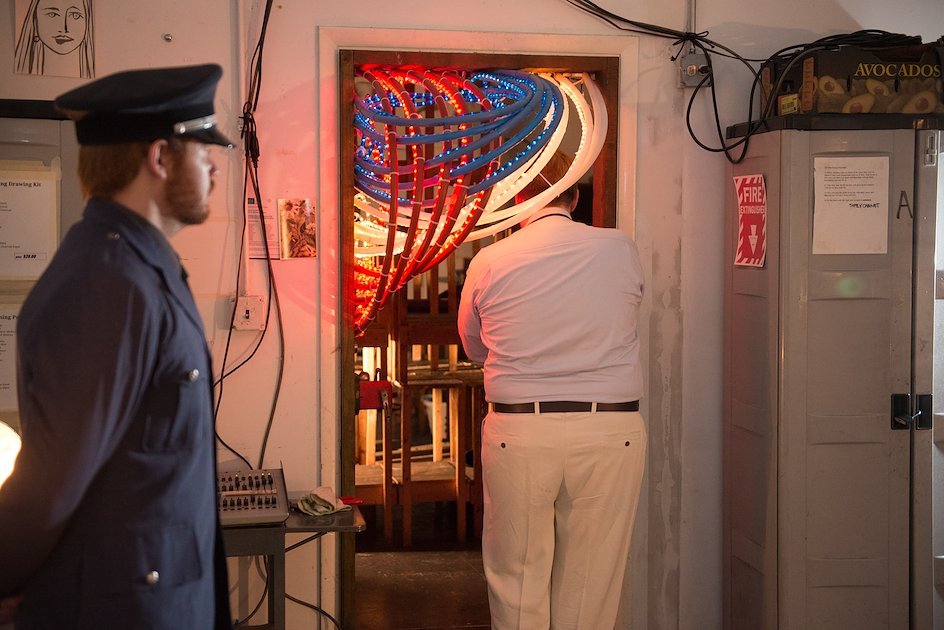 The Visitor (Zachary Vanderburg) examines his surroundings.