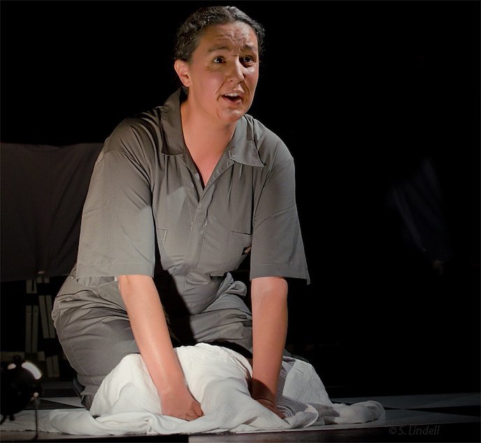 Magda (Jessica Oliver) comforts her husband John (Stuart Thompson), a wounded resistance fighter.
