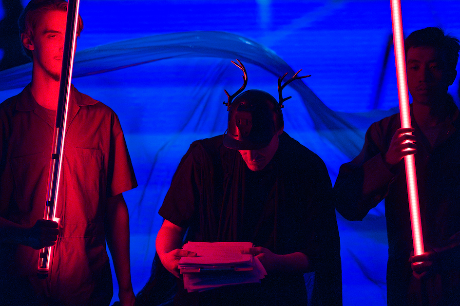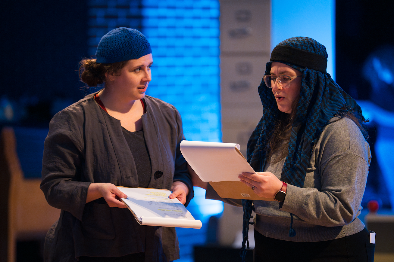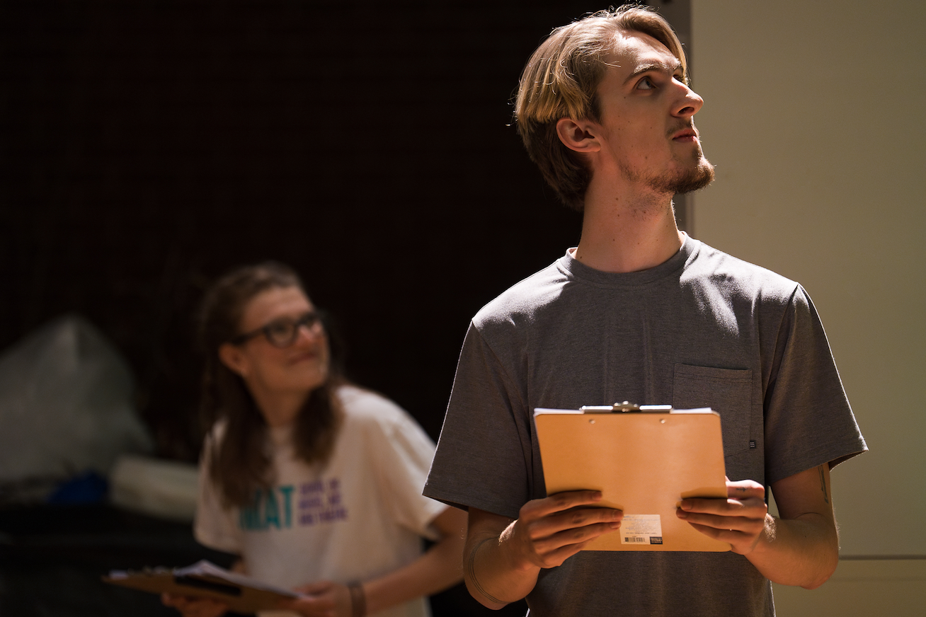 Isaac (Holly Robison) listens to Abraham (Sydney Ray).