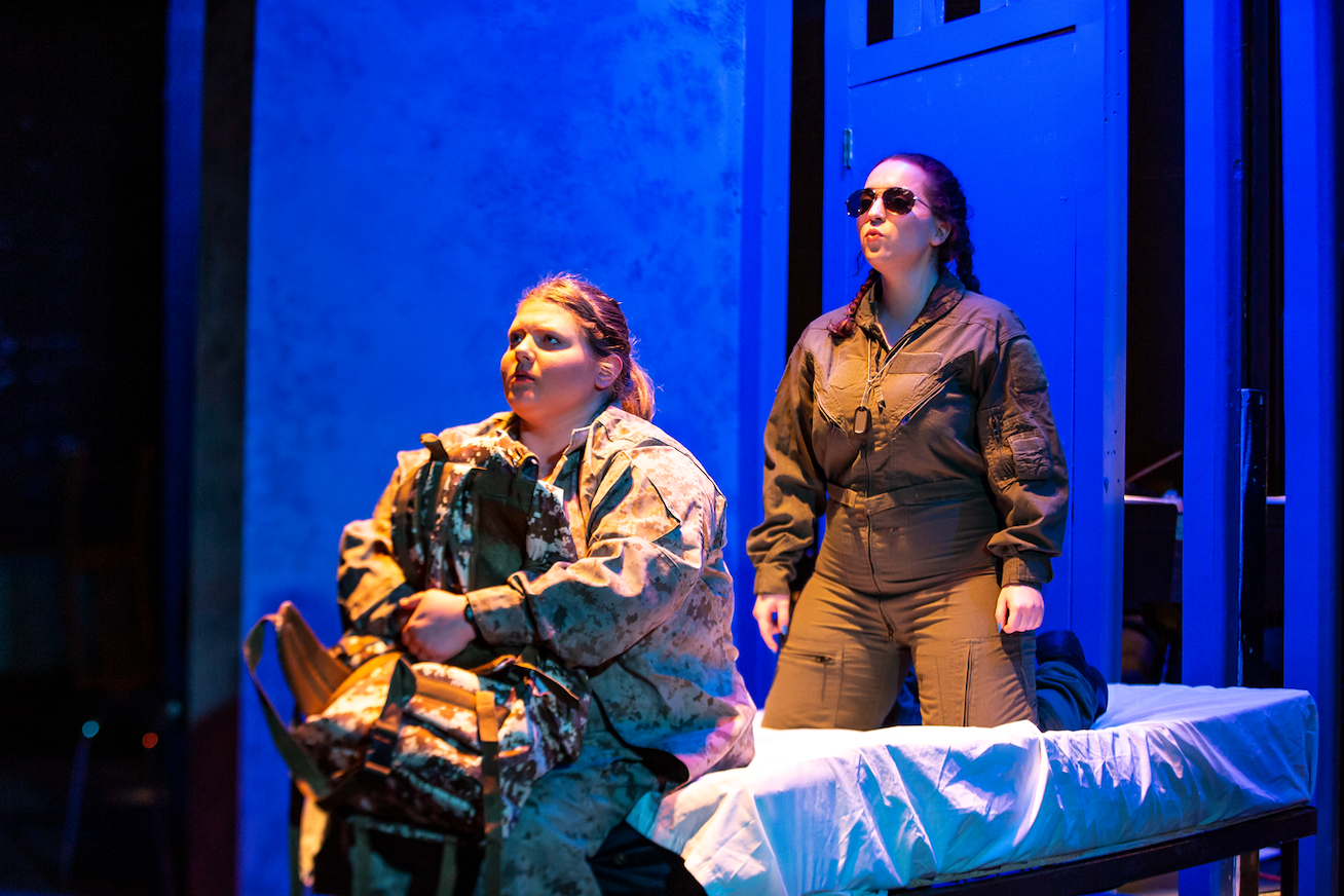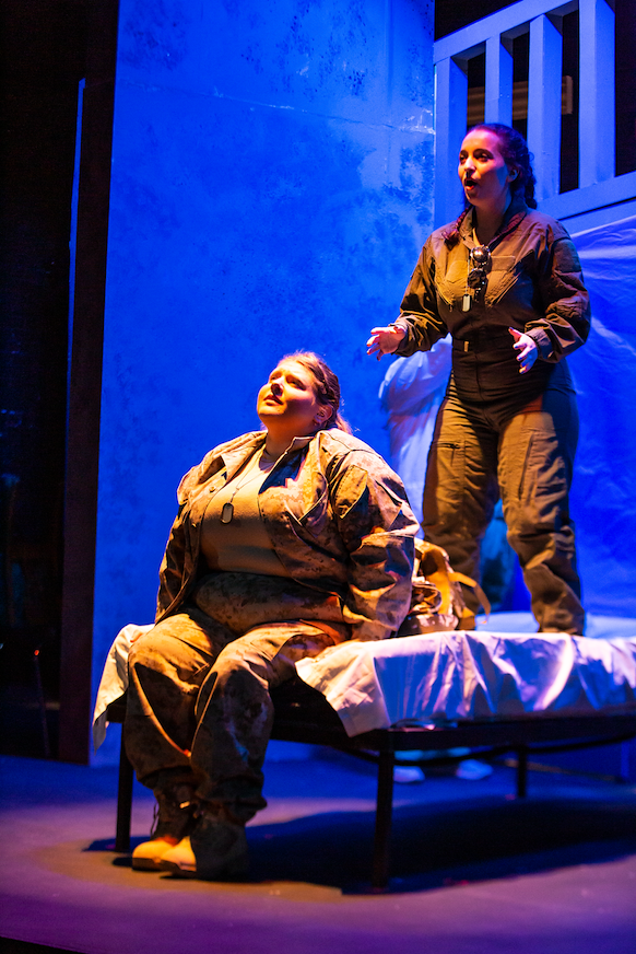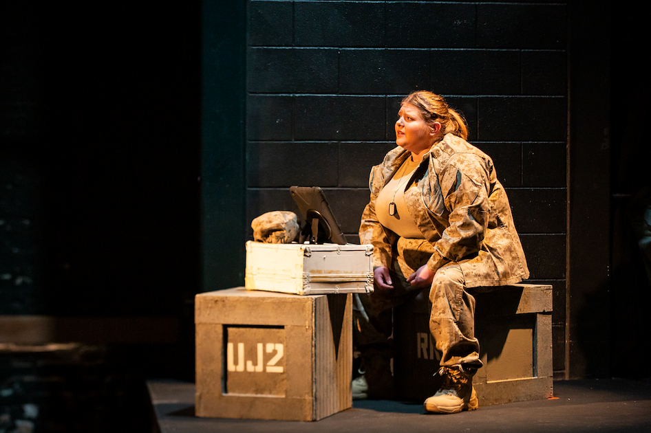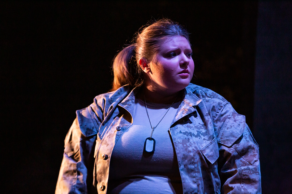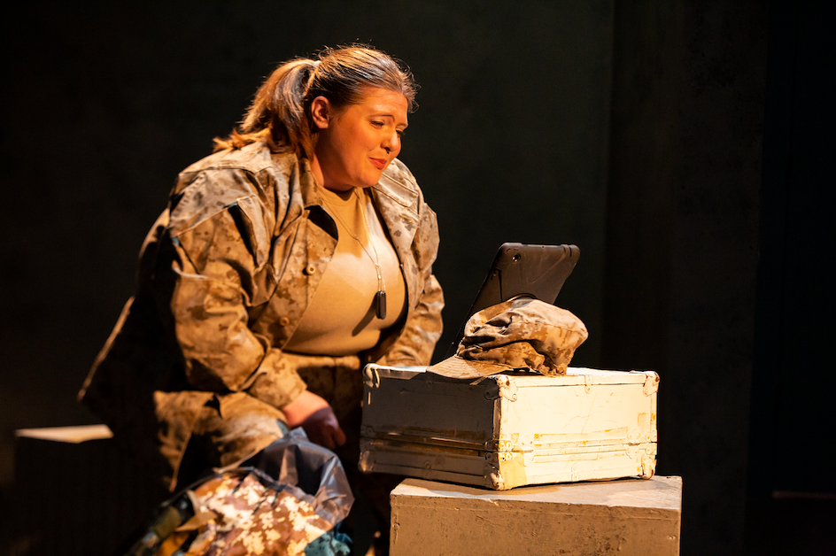 The Soldier (Catherine Larson) calls home...
